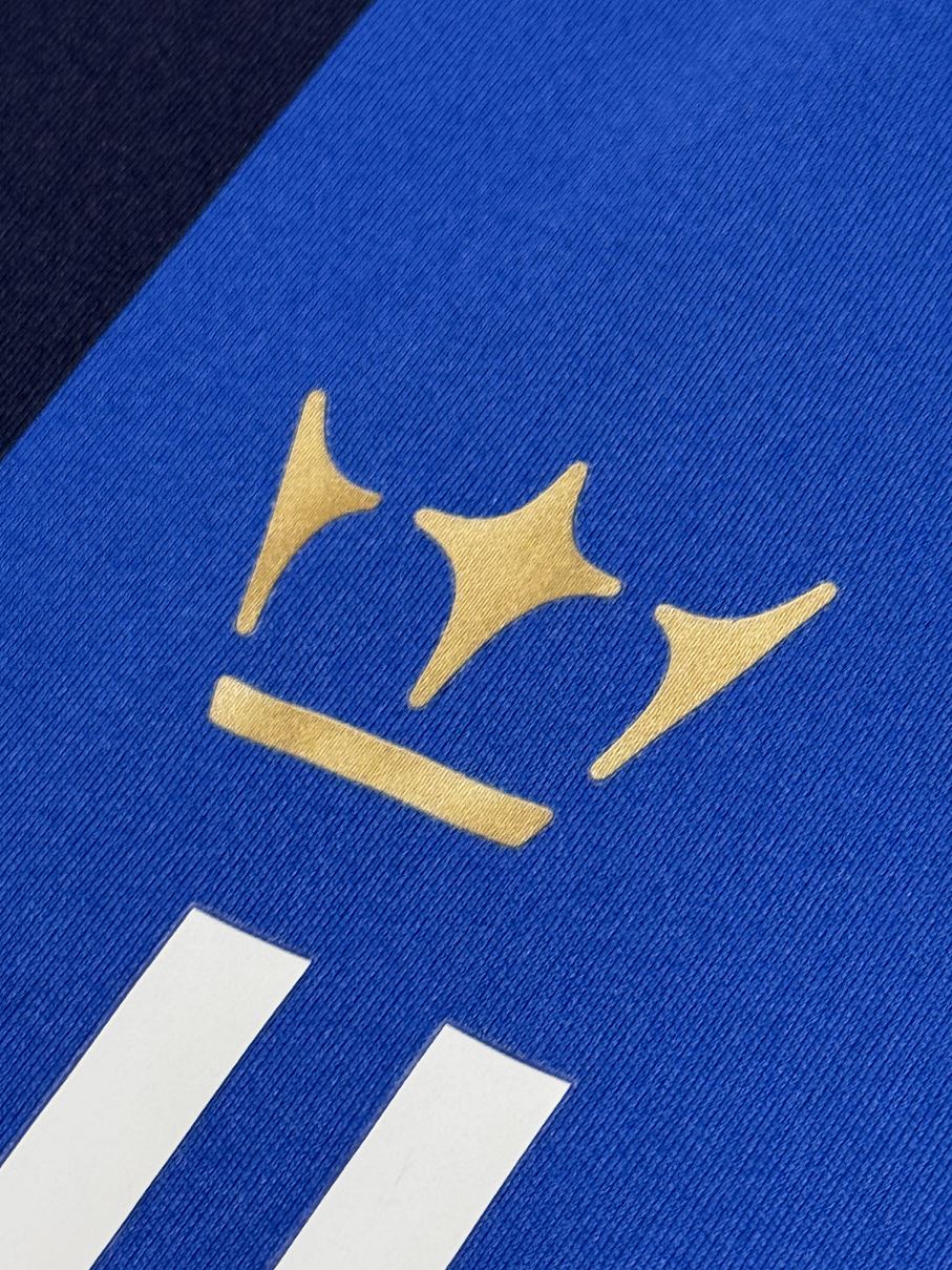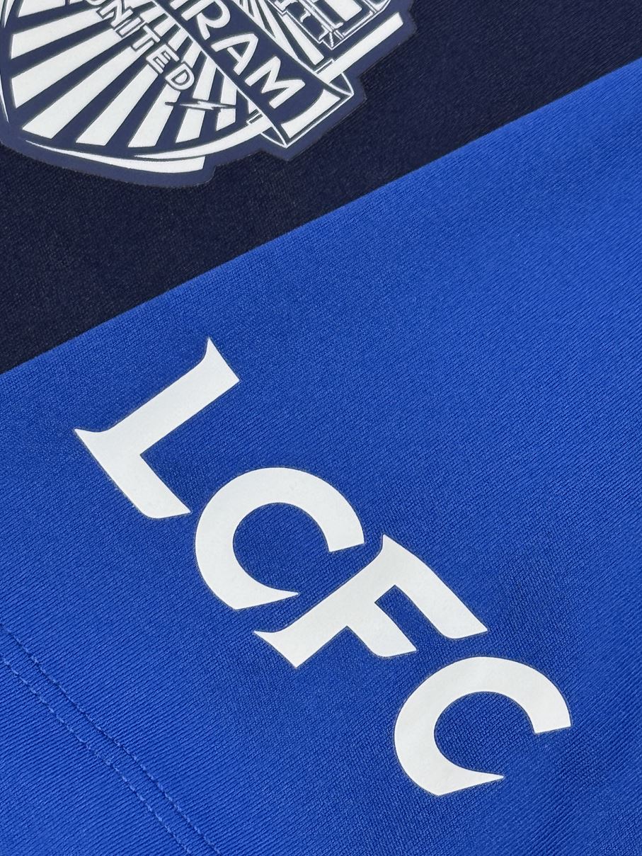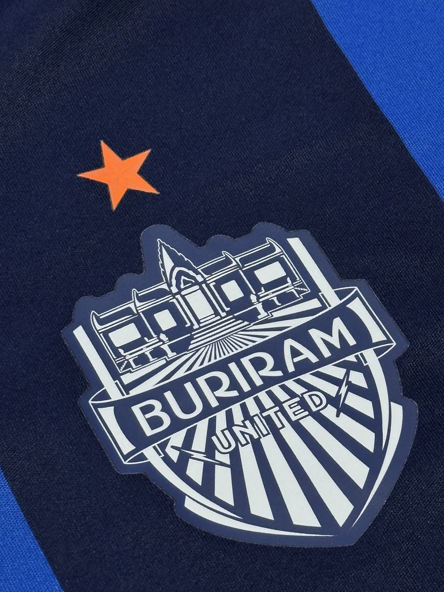 両クラブのエンブレムが胸に並び、また両クラブのホームカラーであるダークネイビーとブルーが、ブリーラムの街を象徴する雷を模したストライプで組み合わされています。