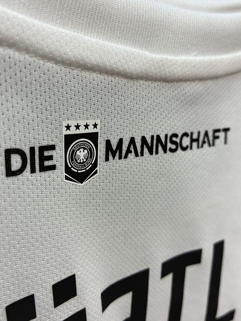 背面の首部分には、ドイツ語で「チーム」や「集団」を意味する「DIE MANNSCHAFT」の文字がプリントされています。