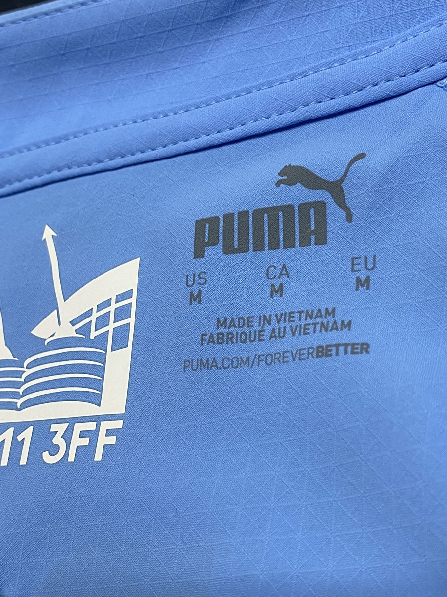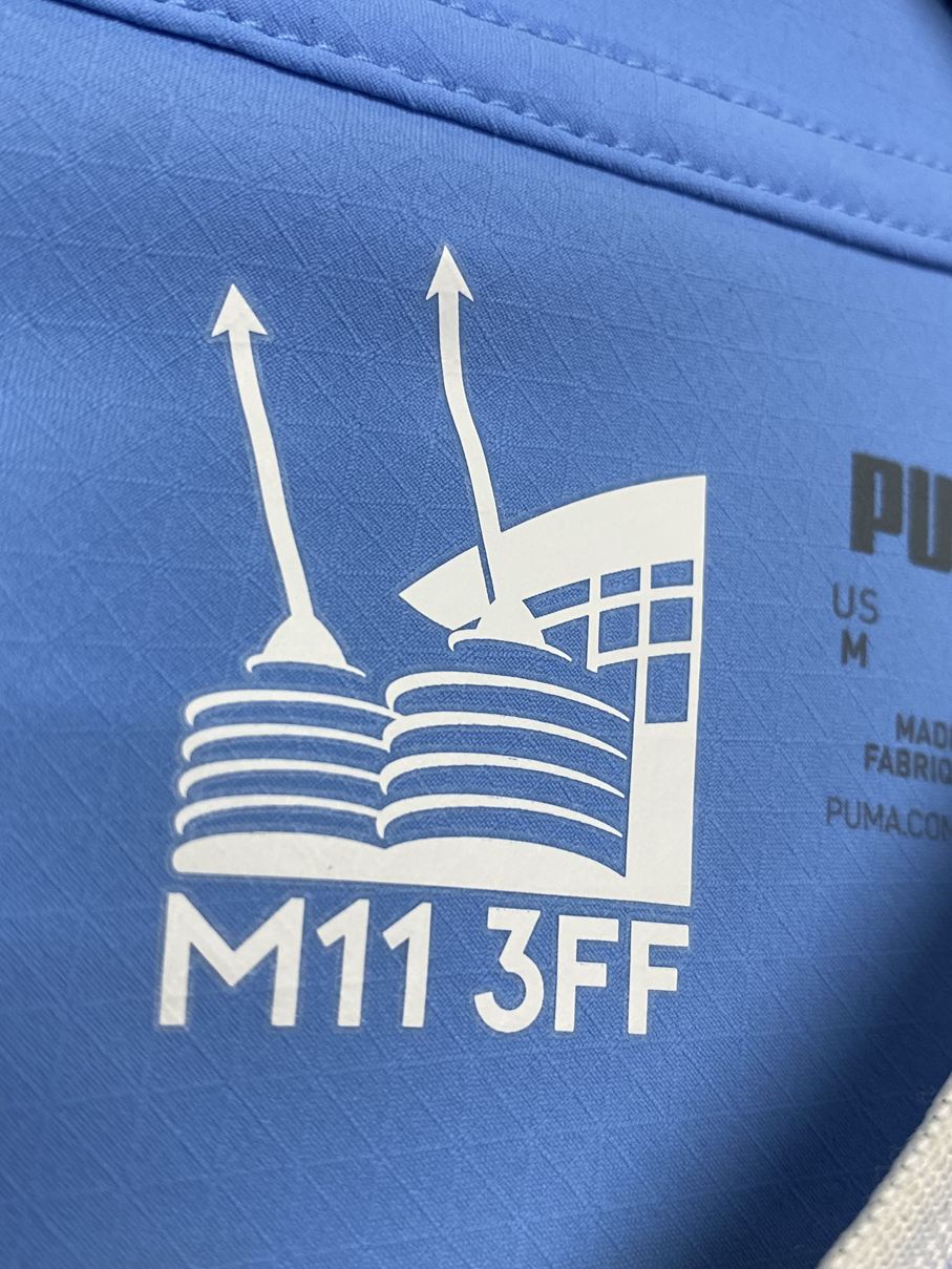 「エティハド スタジアム」の象徴的な特徴に敬意を表し、移転後の初シーズンに着用されたユニフォームからインスパイアされスタジアムの外から見える4つの巨大な塔をモチーフに同系色のストライプを施しています。
