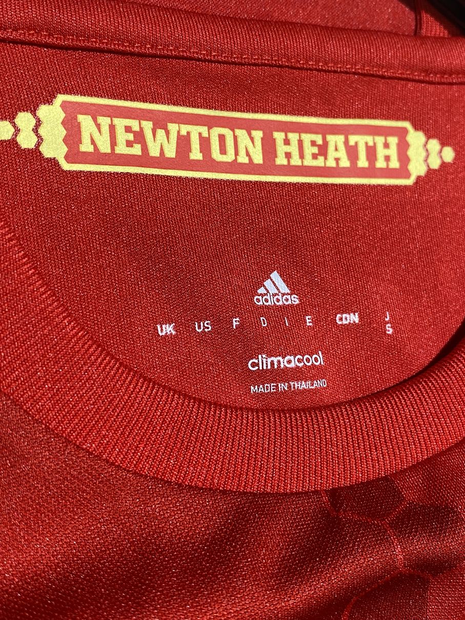 前身である「ニュートン・ヒースFC」のユニフォームデザインをヒントに、明るさの違う二種類の赤を半々に組み合わせた「ハーフ&ハーフ」デザインを採用したホームモデル。
