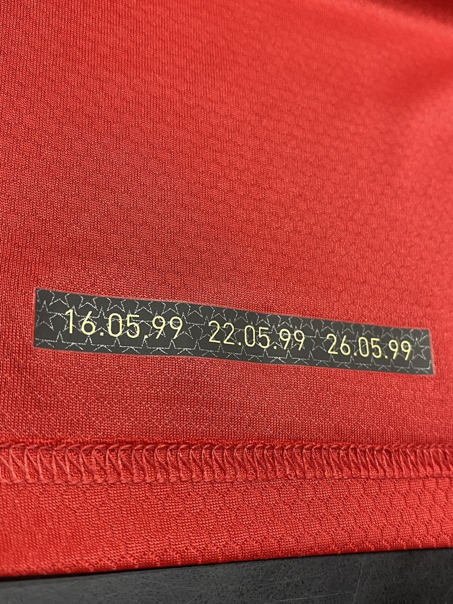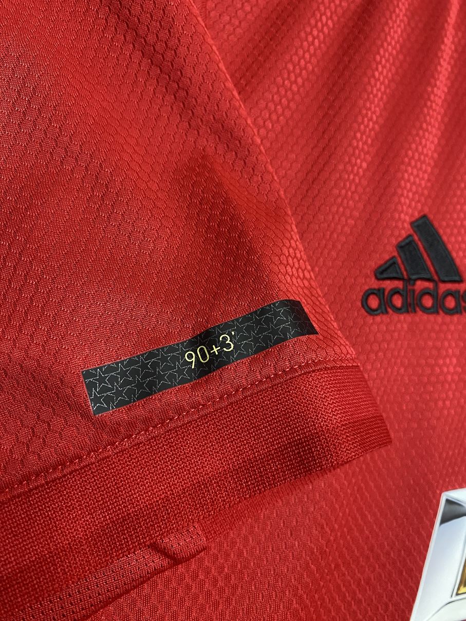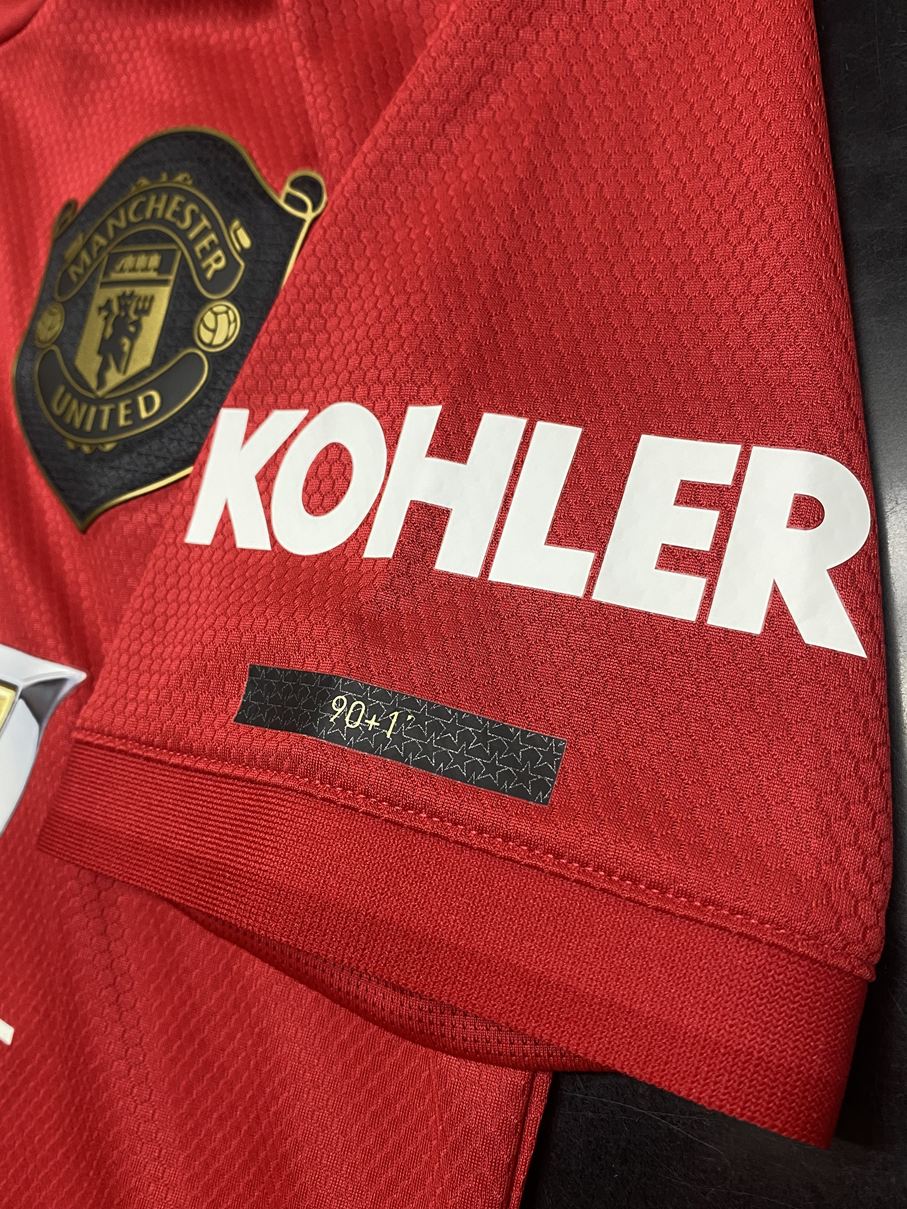 ユニフォームの袖にはUEFAチャンピオンズリーグ決勝での歴史的なゴールを称え、得点が決まった時間の90+1、90+3という数字がプリント。また、ニューカッスルに勝利したFAカップ決勝の勝利、プレミアリーグ優勝を決めたトッテナムとの一戦もユニフォームの下部に反映されています。