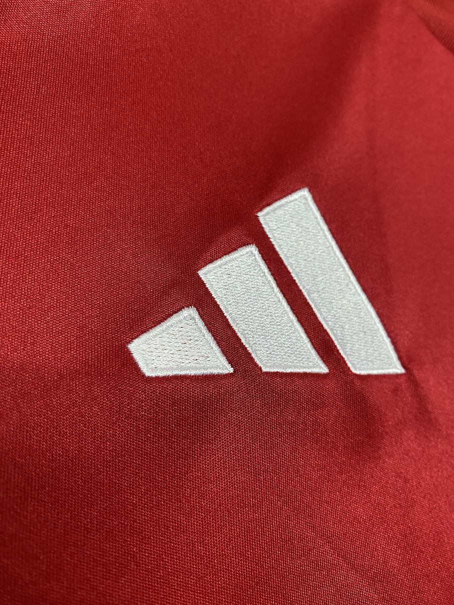 大胆な赤の組み合わせは、ユニフォームのメインボディーを流れるように、明るい赤から暗い赤のグラデーションを形成するためにブレンドされ、常に変化する色のようにみえる作りになっています。