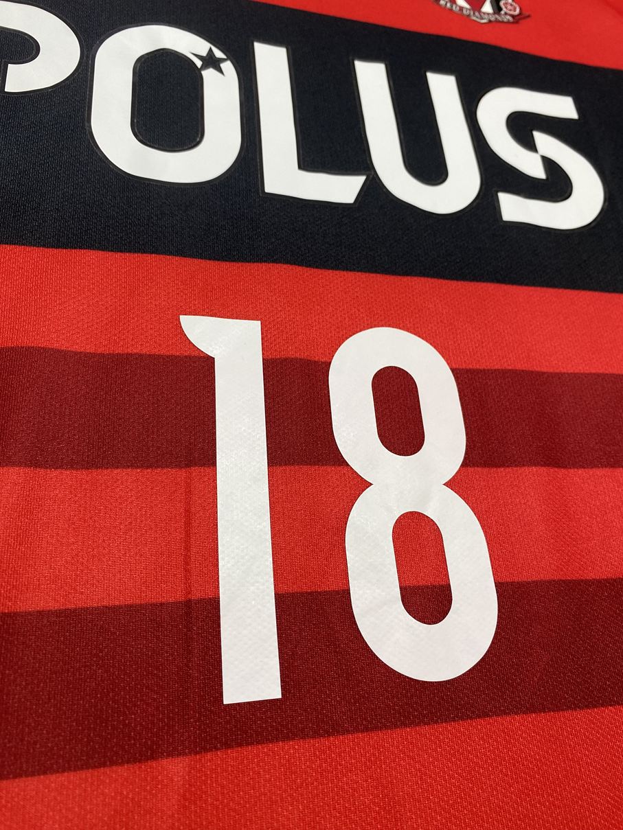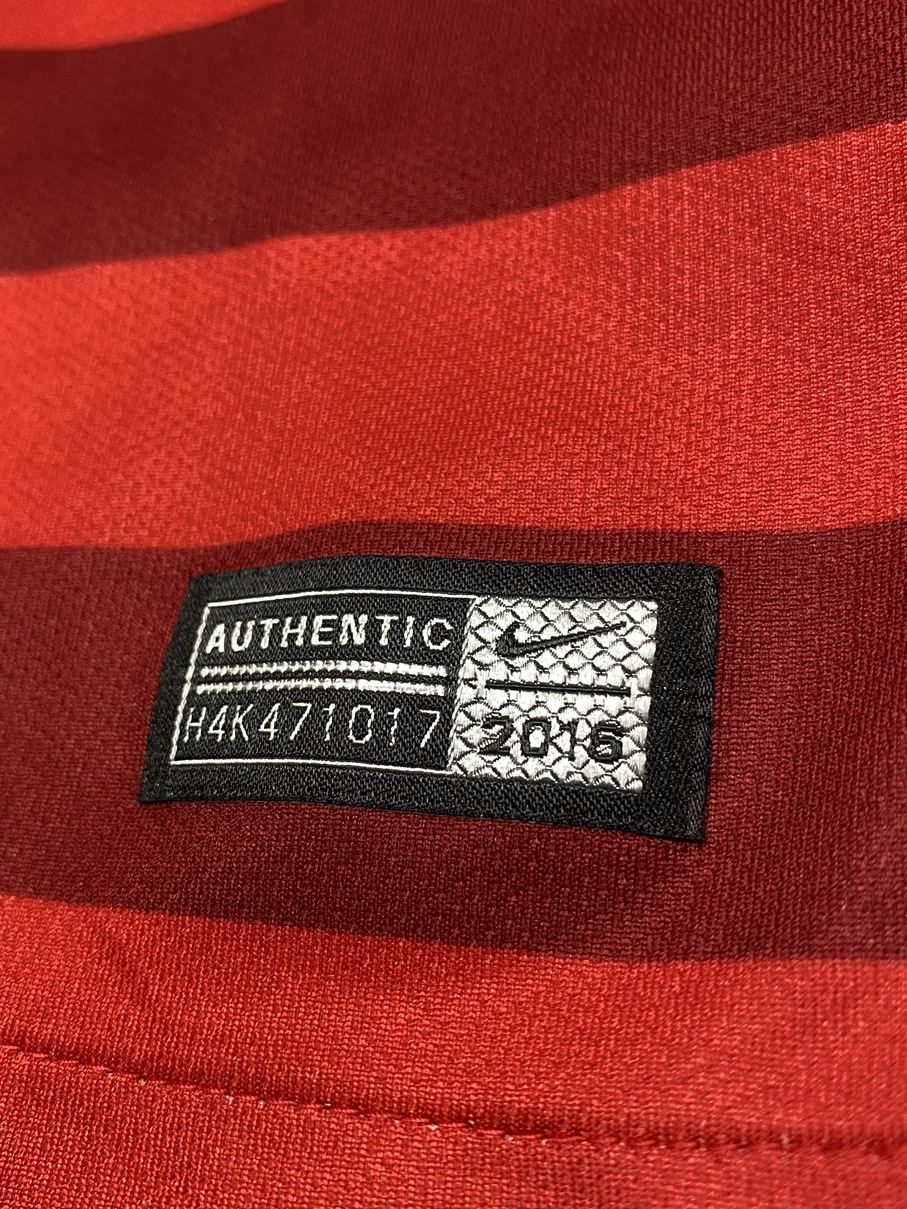 伝統のレッド・ホワイト・ブラックのカラーコンビネーションを継承したホームモデル。エンブレムに使用しているストライプからインスピレーションを得て、クラブ史上初となるボーダー柄が採用されました。