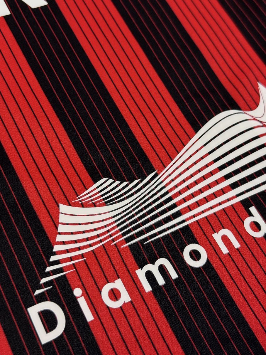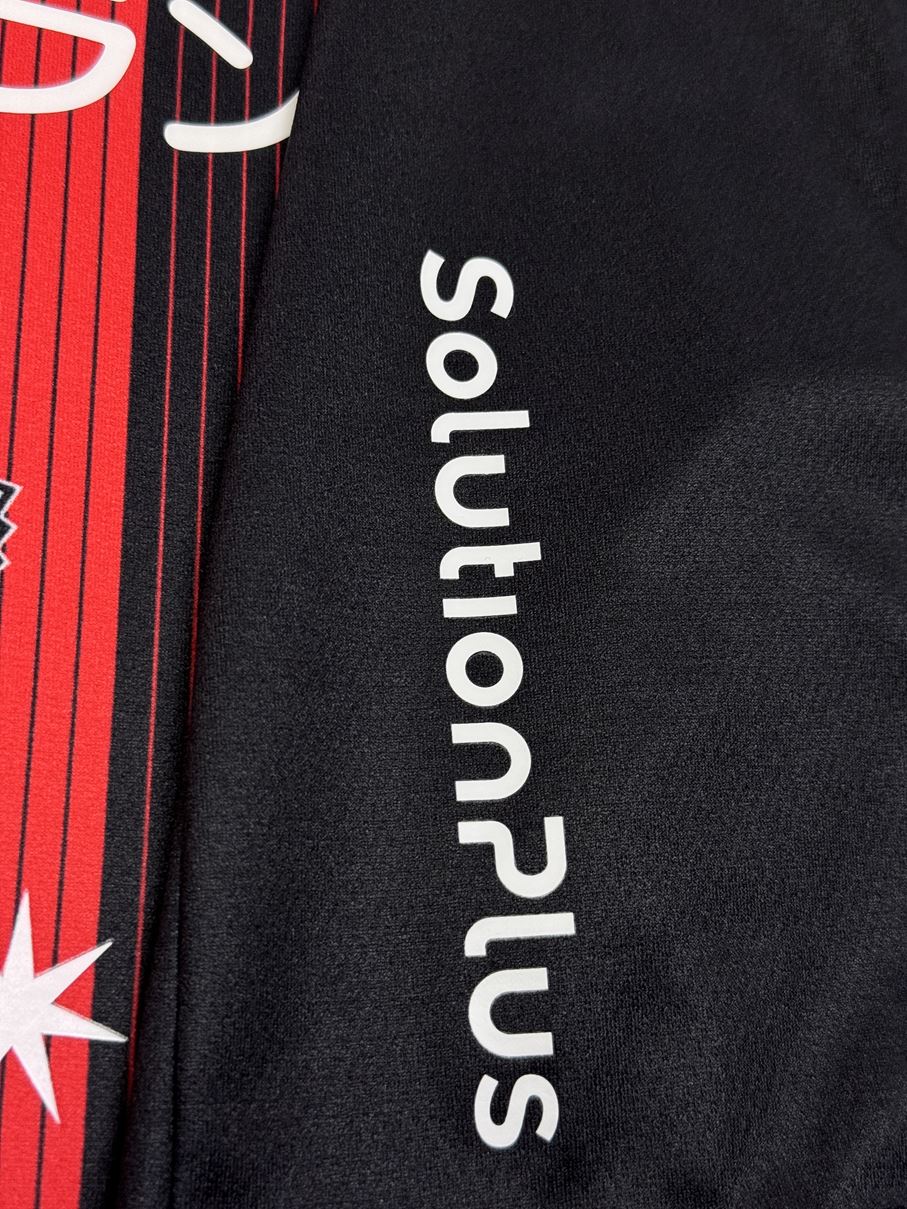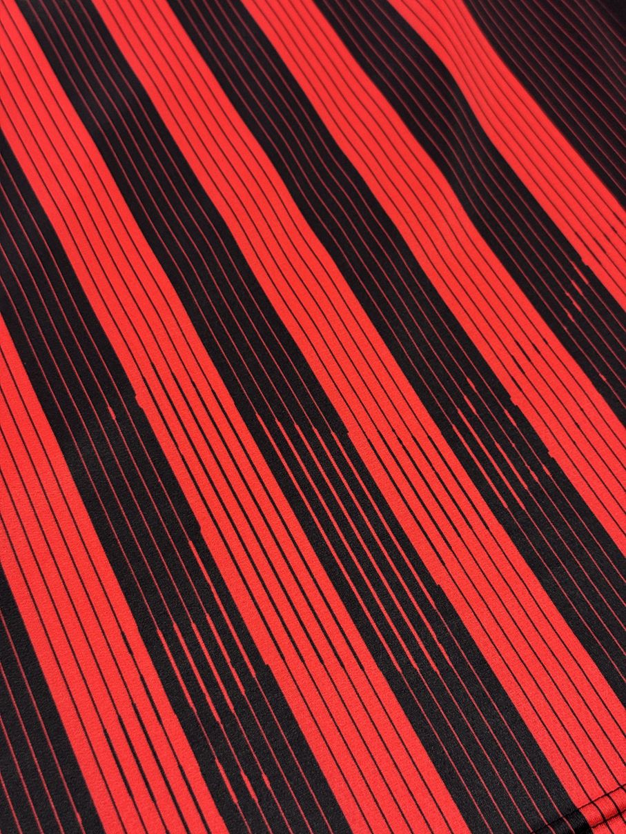 基本の赤黒縦縞をベースに細いピンストライプを組合せたホームモデル。