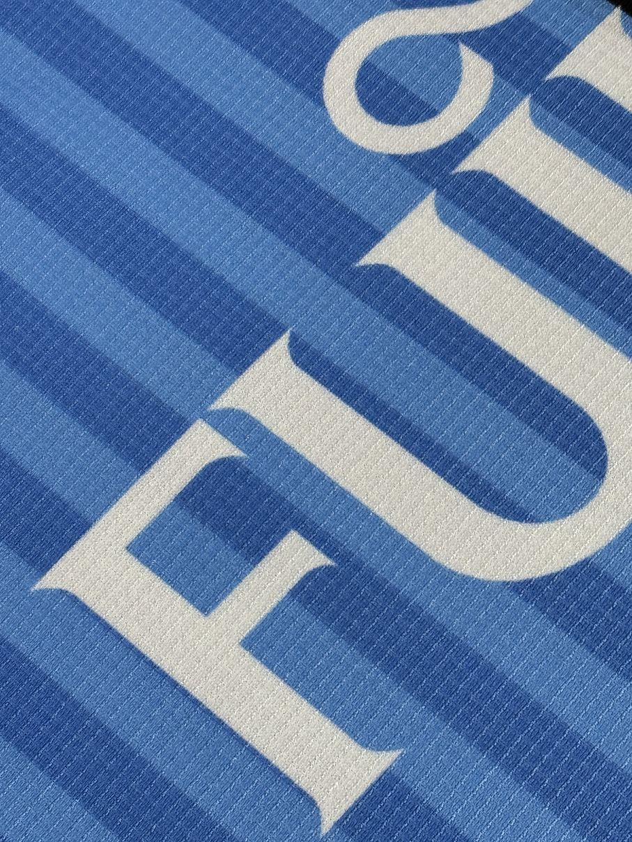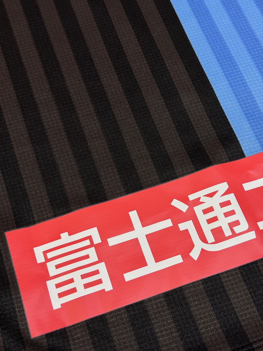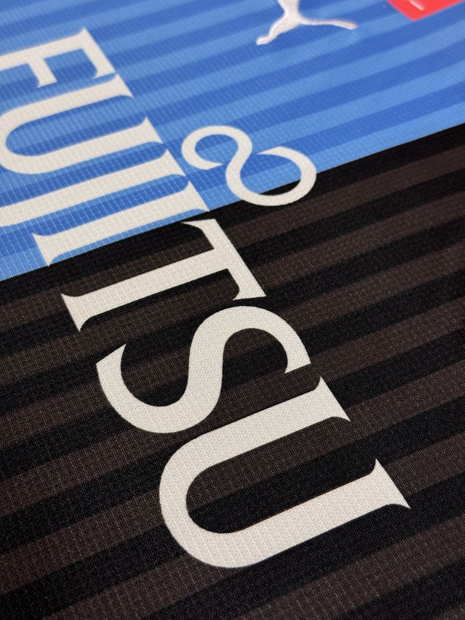 「青」の部分はクラブの活動が取り組む『優しさや安心感』を、「黒」の部分はチームが持つ『力強さ』を表現しています。公式ショップでの追加圧着ができた両鎖骨スポンサーつきです。