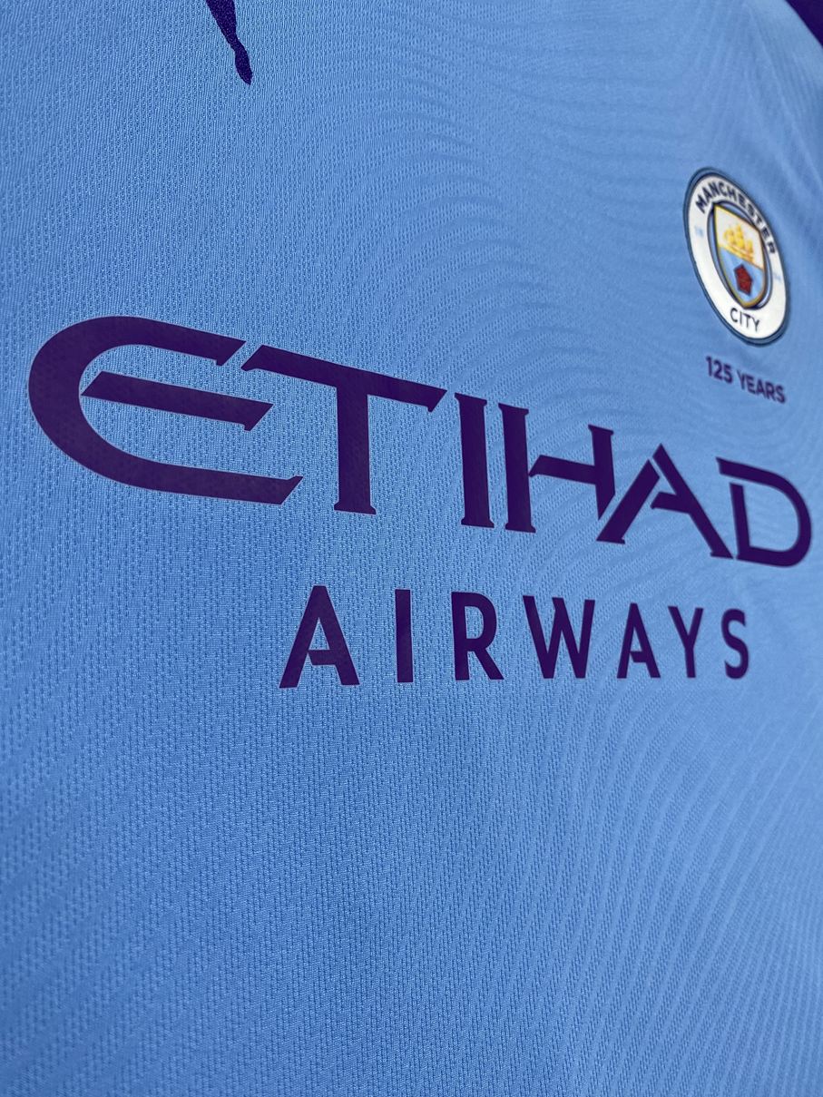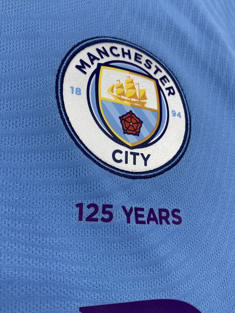 工業都市マンチェスターを支えた綿産業に敬意を表し、織機をイメージした波模様が全身に描かれています。エンブレム下には創設125周年を祝う「125 YEARS」の文字が刻まれています。このシーズンはリーグ戦は2位でフィニッシュ。FAカップは準決勝でアーセナルに敗れましたが、カラバオカップは決勝でアストン・ヴィラを2-1で破り3連覇を達成しました。