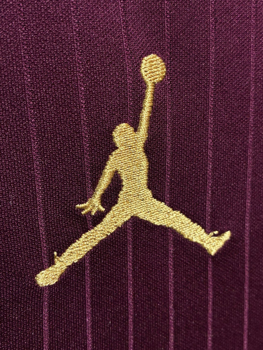 1992年のエア・ジョーダン6「ボルドー」にインスパイアされ、同シューズのカラーが取り入れられたコラボユニフォーム。