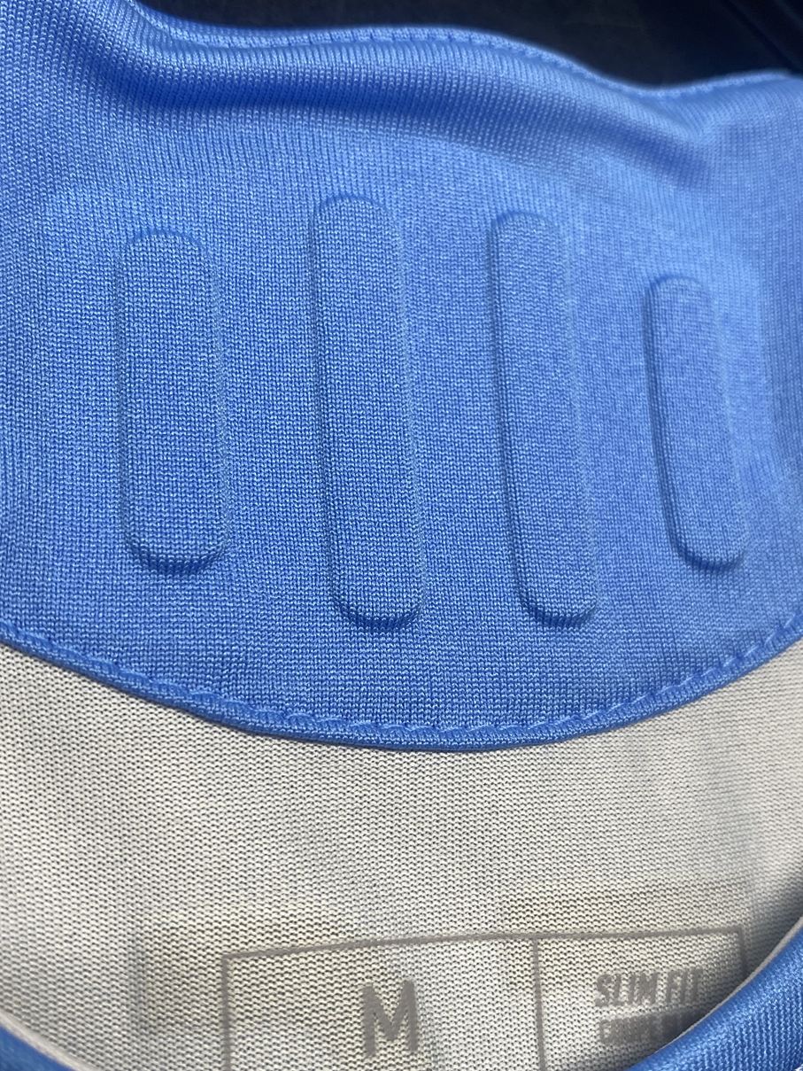 伝統の水色と白のストライプ柄で襟は中に白ラインが入ったクルーネックとなりました。
