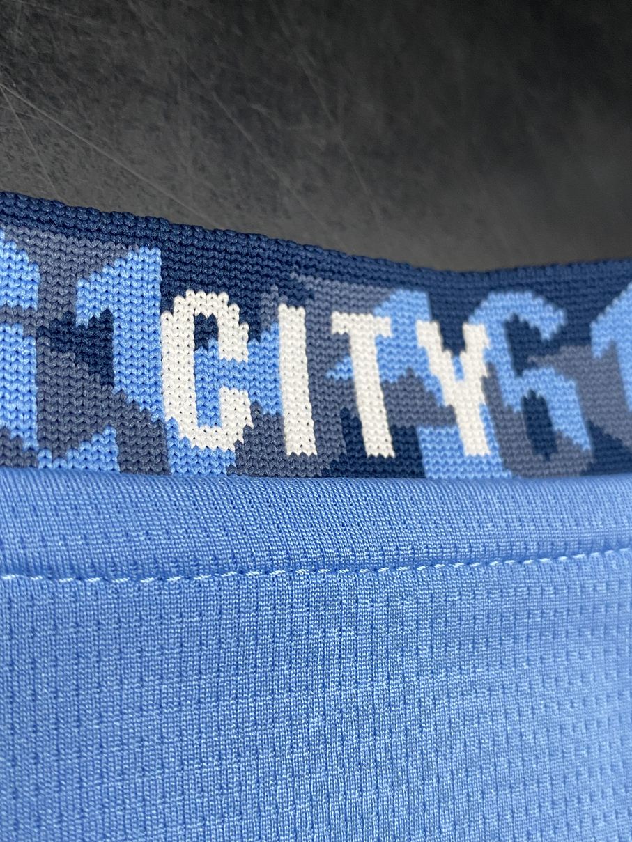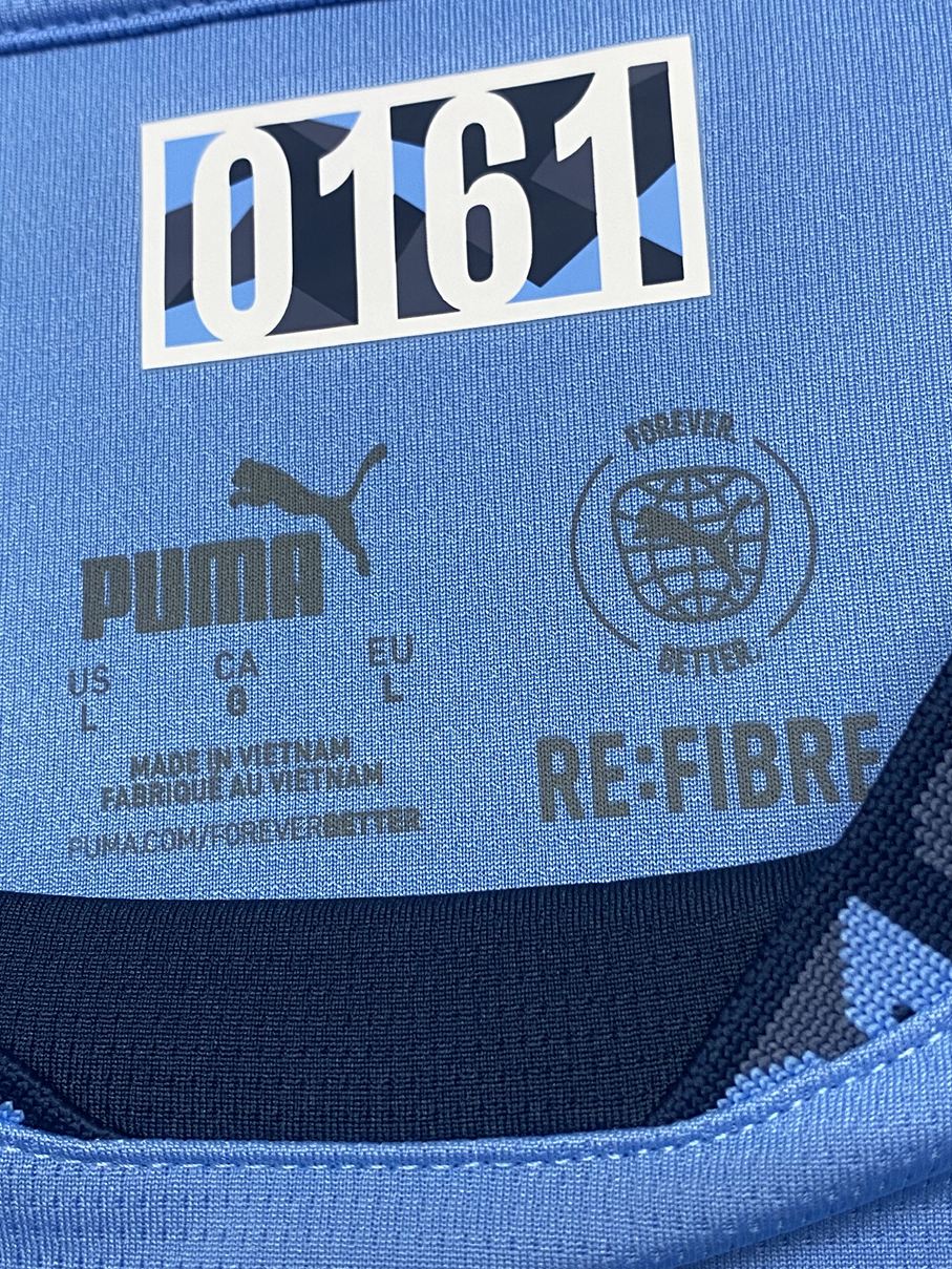 いつものスカイプルーカラーにネイビーとターコイズをアクセントにカラーとカフに施された落書き調の“0161”のディテールを採用。これはマンチェスターの固定電話番号に付けられた市外局番“0161”へのオマージュでこの“0161”はユニフォームの内側にも施されています。