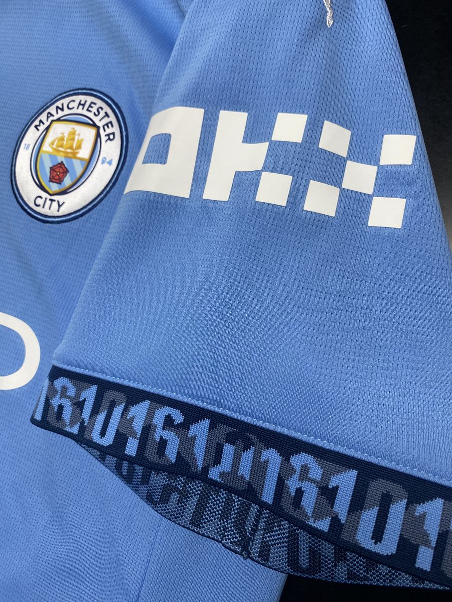 袖に位置する仮想通貨取引所のOKXとともに引き続きエティハドをメインスポンサーとなった2024/25シーズンモデル。