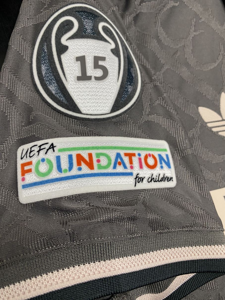 HP(ヒューレット・パッカード)の袖スポンサーとUCL#15,UEFA Foundationパッチがついています。