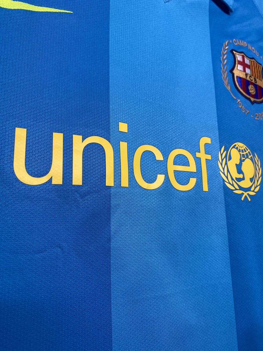 1957年9月24日に開場されたホームスタジアム「カンプ・ノウ」の50周年を記念した刺繍が胸エンブレムの周りに施されています。2008/09シーズンもサードモデルとして同デザインのシャツが使用されましたが、カンプ・ノウ50周年記念の文字が入らない仕様のものを着用しました。