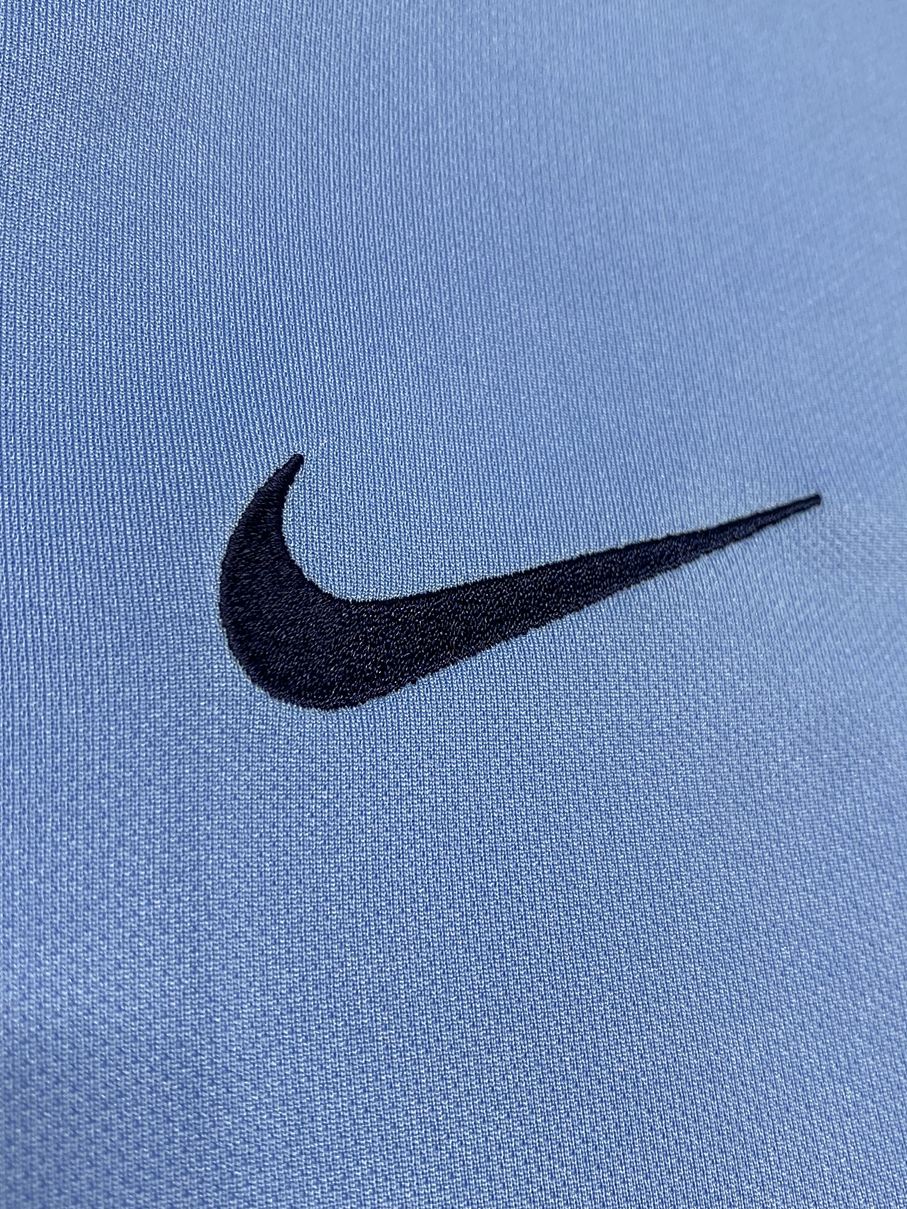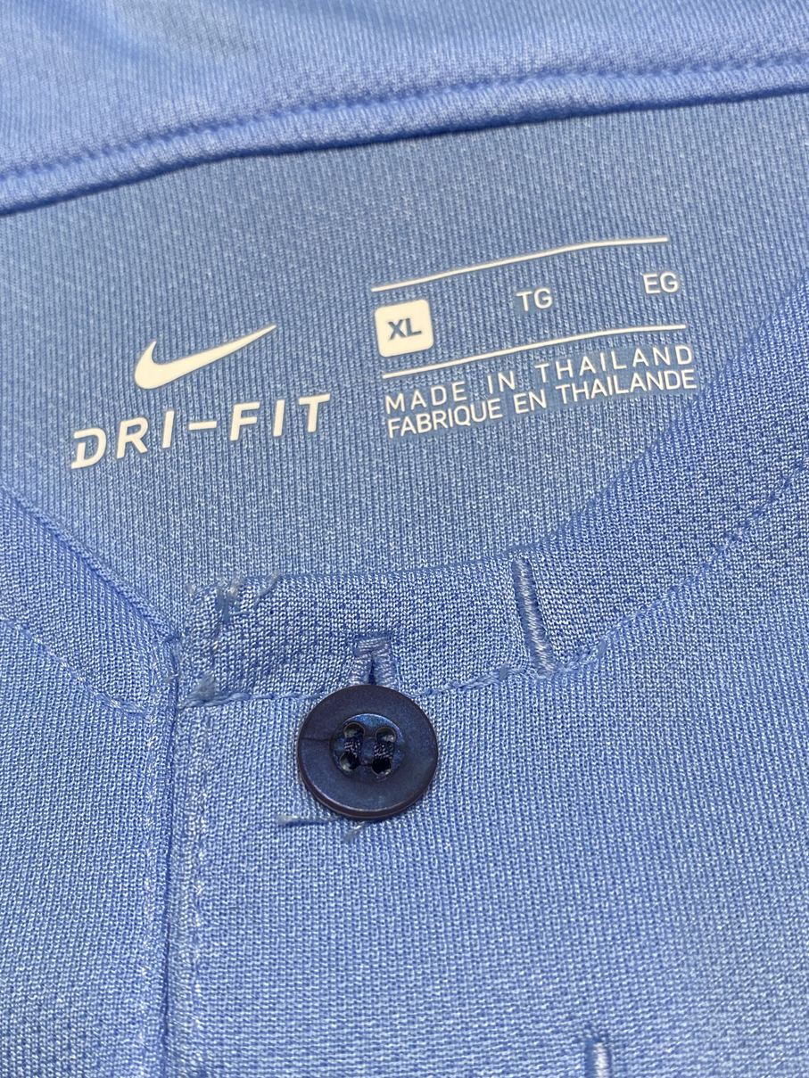 伝統のスカイブルーをベースにしながら、肩から袖のギザギザグラフィックと襟のボタンが独特な印象を与えるモデルになっています。