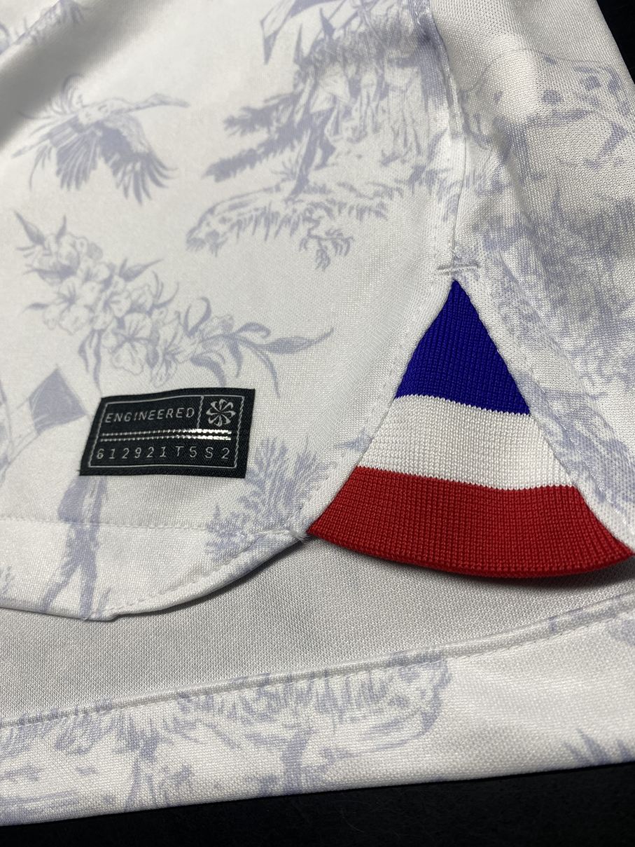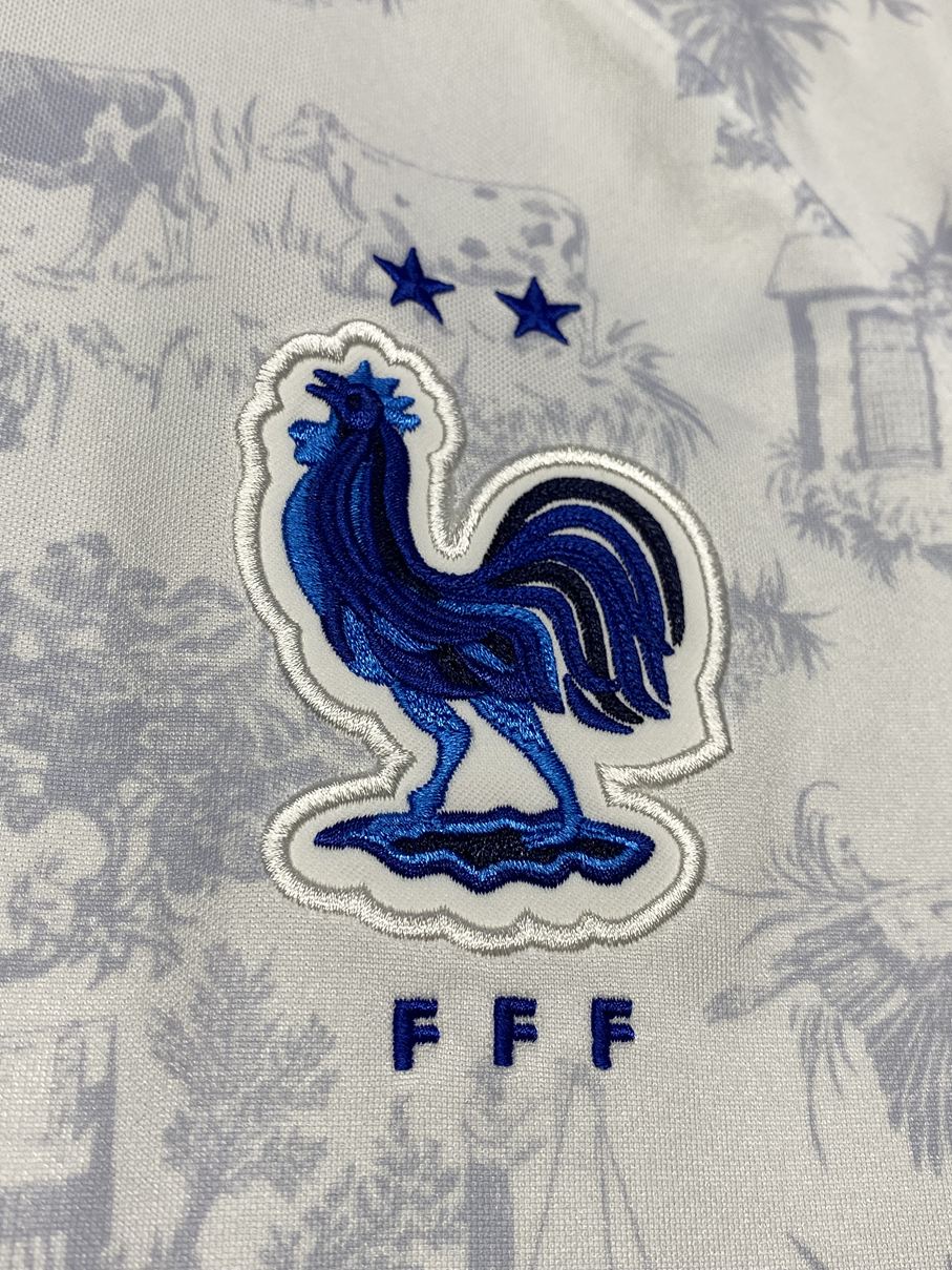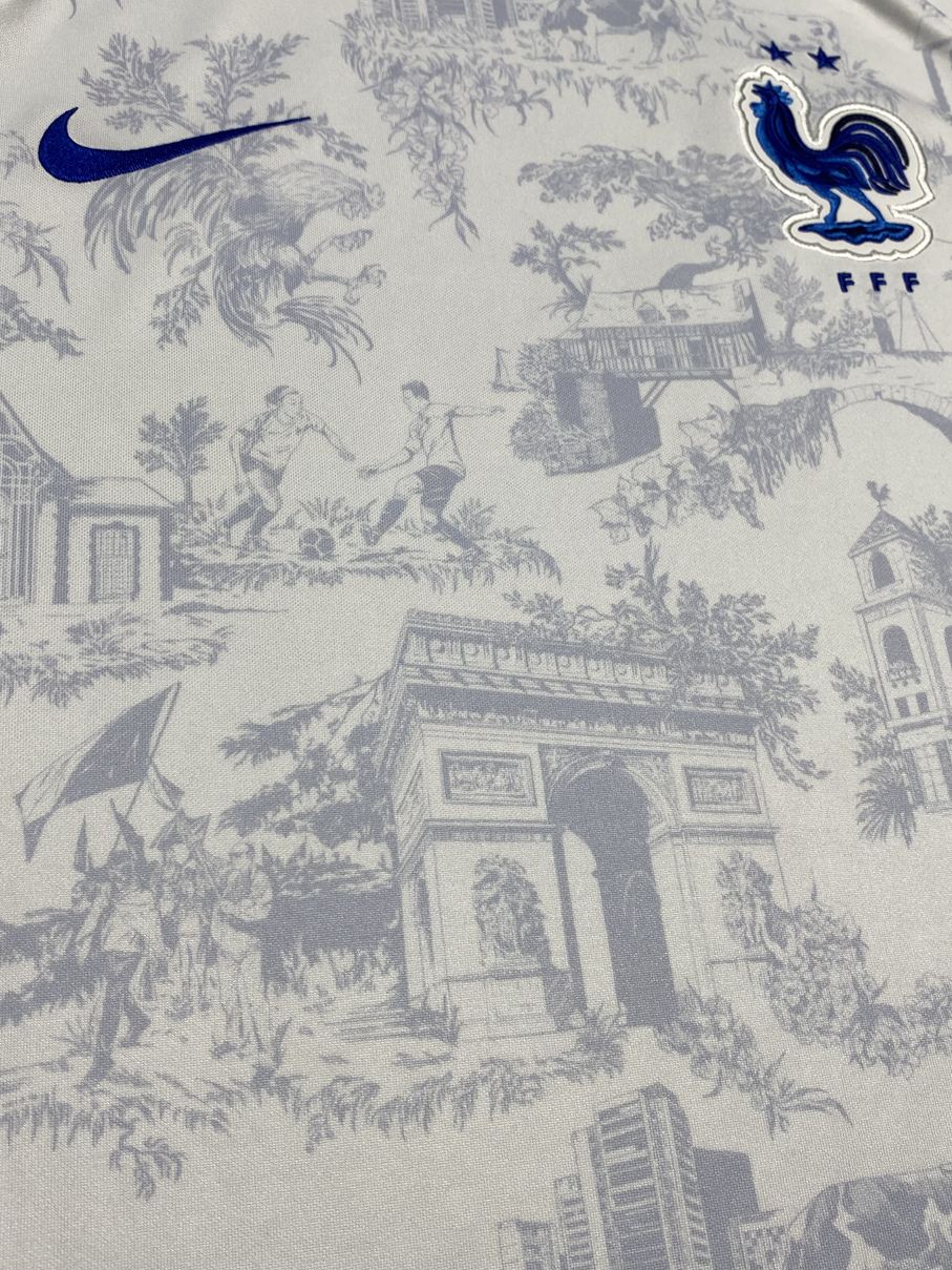 上記W杯カタール大会では、着用機会のなかったアウェイモデル。UEFAネーションズリーグなどで着用、フランスの伝統的な生地「トワル・ド・ジュイ」をモチーフにしています。
