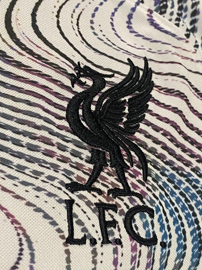 ホワイトとブラックを組みあわせ、マルチカラーの渦巻き大理石のデザインを採用したアウェイモデル。