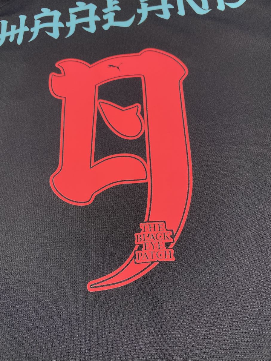 このユニフォームは、東京発のストリートファッションブランド「BlackEyePatch」がデザインしたスペシャルフォントのユニフォーム。日本のストリートファッションブランドとコラボレーションすることにフォーカスし、漢字が持つ“とめ・はらい”といった独特のフォルムを数字やアルファベットへ落とし込み、オリエンタルに表現しています。