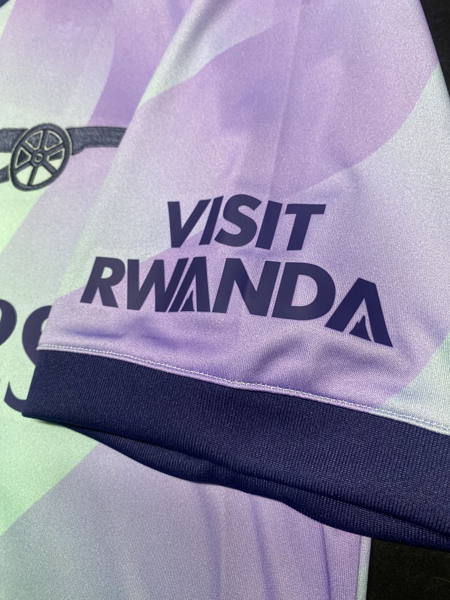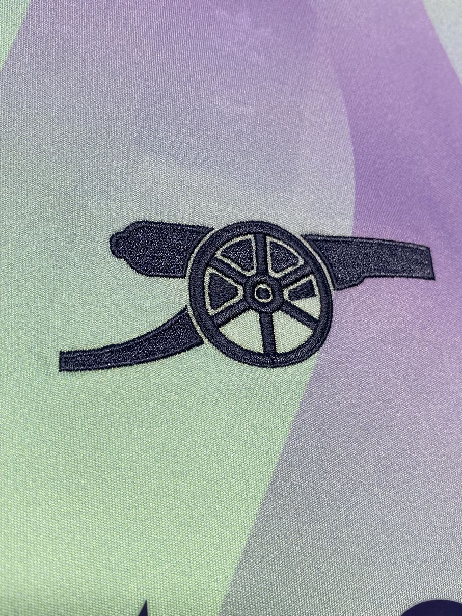 アーセナルのユニフォームでは、1992年以来となるトレフォイルロゴが復活した3rdモデル。