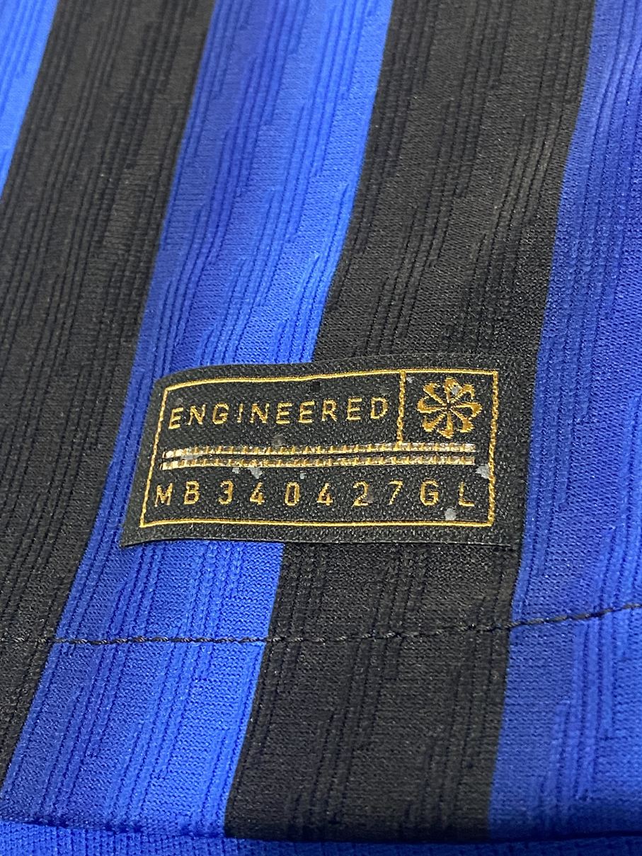 不揃いの形状がユニークなストライプは、チーム名“INTER”をデザイン。