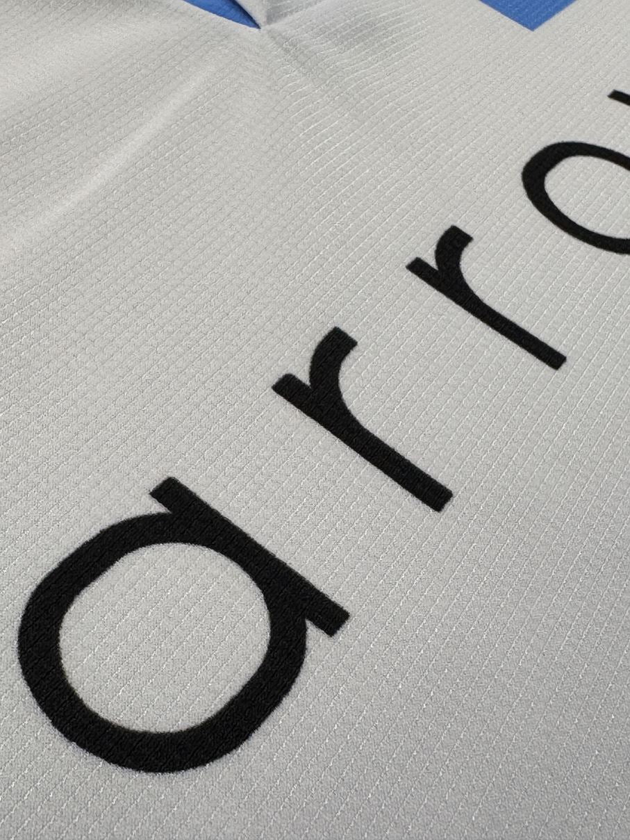 1997年のモデルを復刻したホームモデルに対して、こちらは1998年のアウェイモデルをリバイバル。フロンターレ史でもポイントのひとつであるJ1参入決定戦を戦ったシーズンを、クラブ創設20周年の機会に蘇らせています。