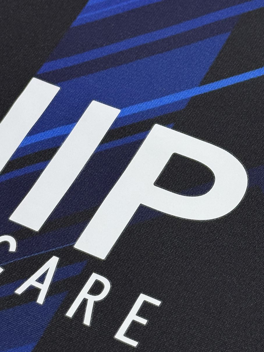 ガンバ大阪の象徴であるストライプデザインに、チームの<上昇>を表現した幾何学柄をダイナミックに配したコンビネーションデザイン。多彩なブルーで表現されたその幾何学柄は、ガンバ大阪に携わるすべての人を意味し、ひとつになって<頂点を目指し、昇りつめる>強いガンバ大阪を表現しています。