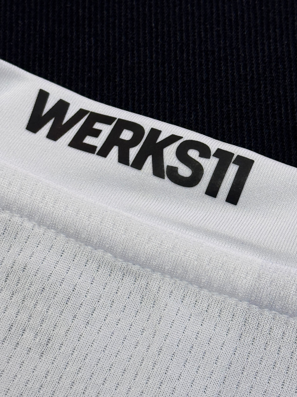 シンプルなデザインの中にも控えめなグレーの縦縞を採用したアウェイモデル。前面右側にクラブエンブレムにもある獅子を配置しています。