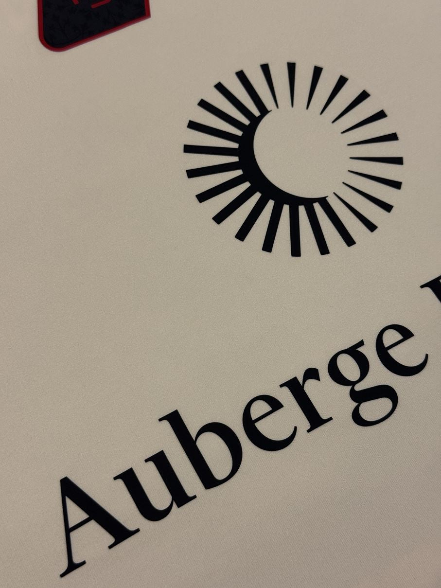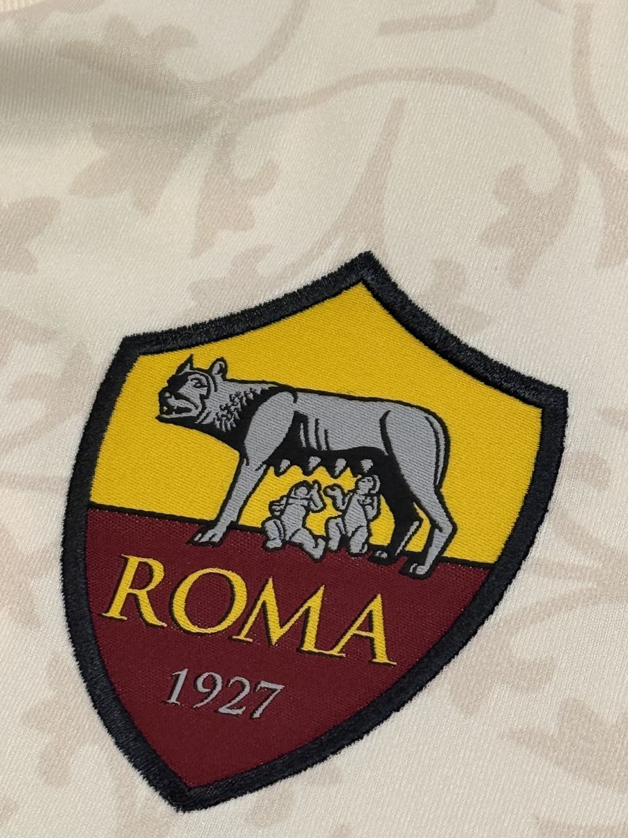 アイボリーを基調に、永遠の都ローマの文化を思わせるグラフィックが描かれています。胸スポンサーにはこのシーズンは10月5日のセルヴェットFC戦以降着用した「Riyadh Season」が圧着されています。