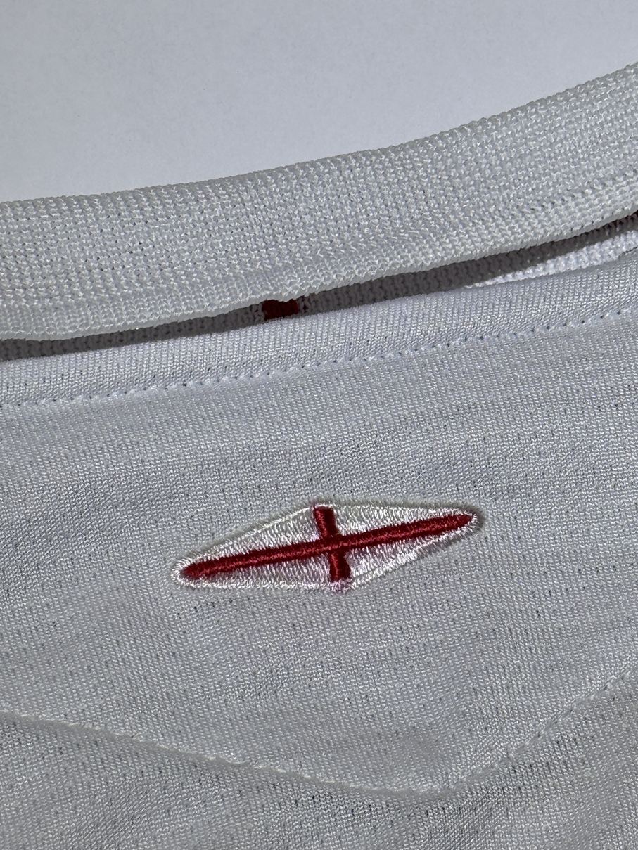 小さな襟が特徴で、右肩にはイングランド国旗のような赤十字が配置されています。
