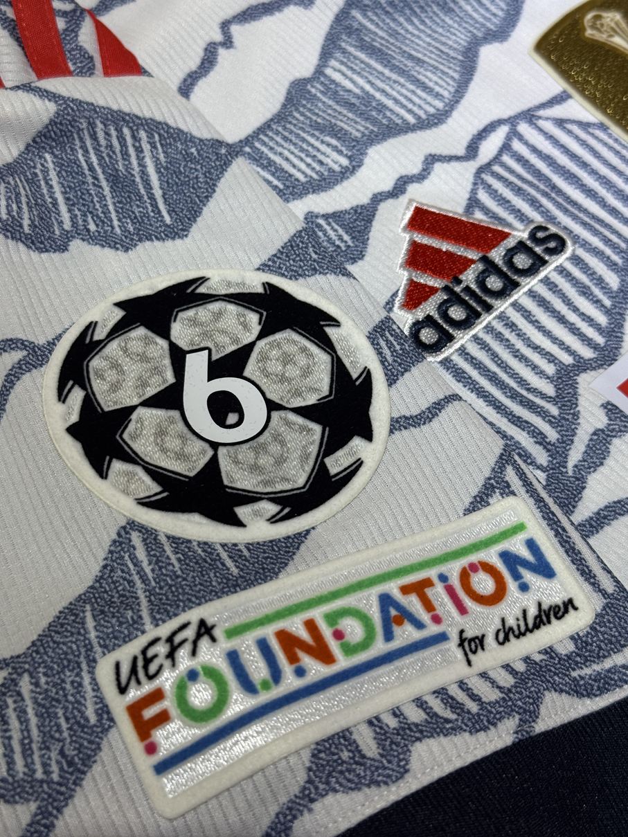 ネームがナンバー上に入り、UCL、UEFAファウンデイション、クラブW杯チャンピオンパッチつきの、UCL仕様です。