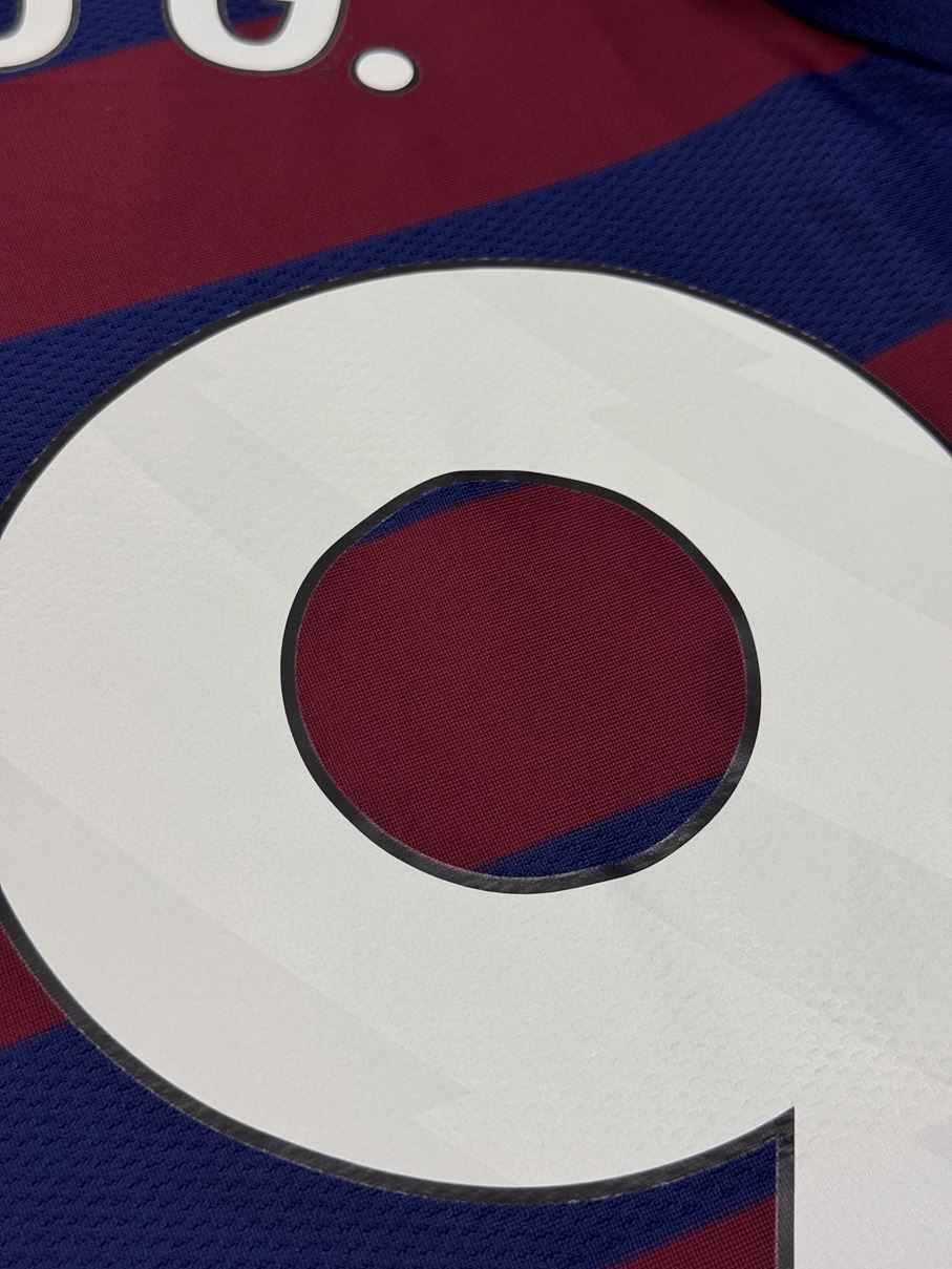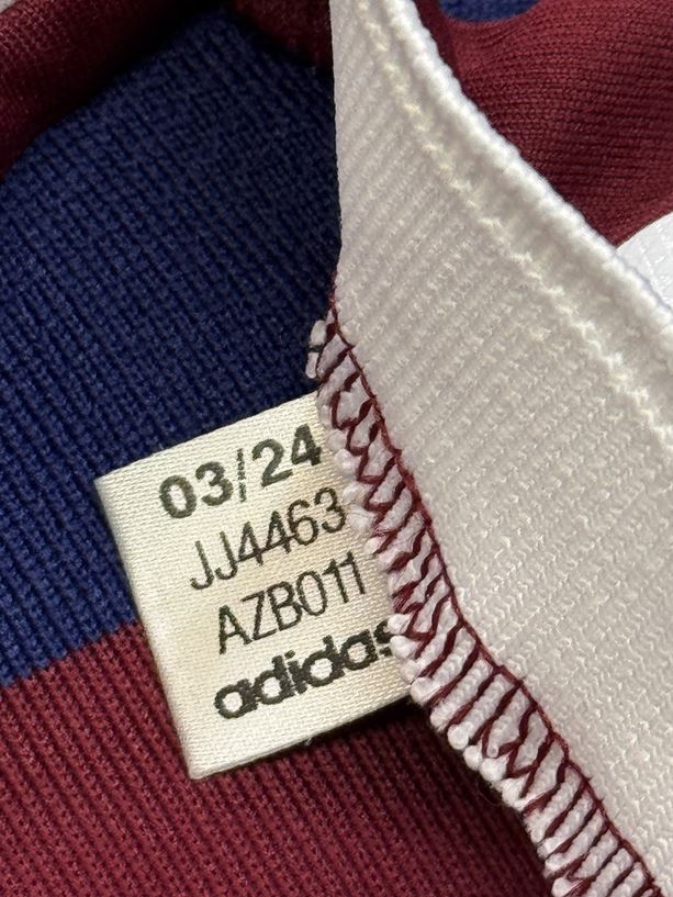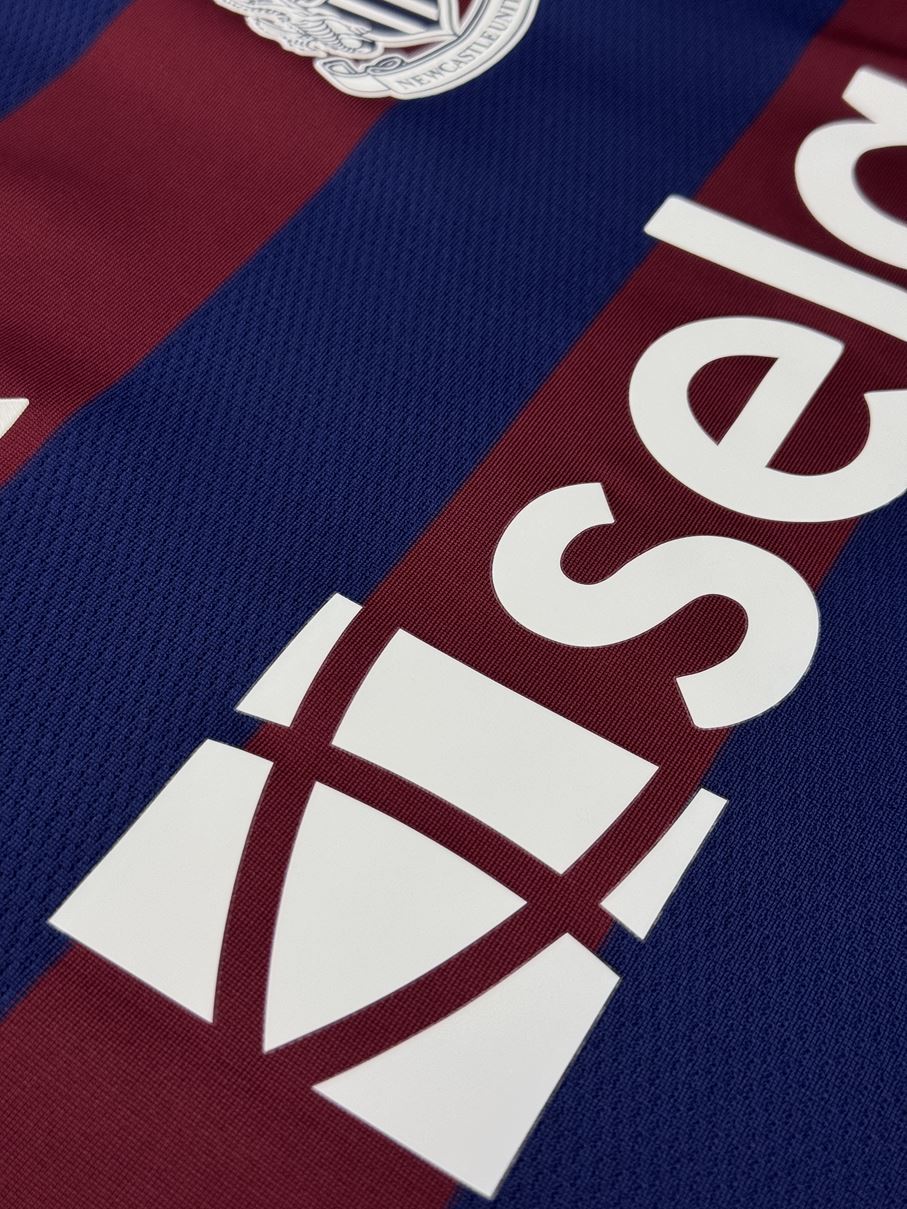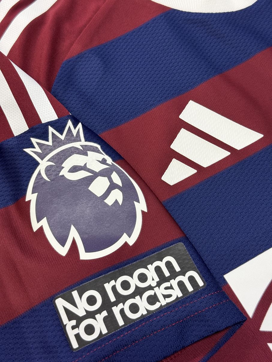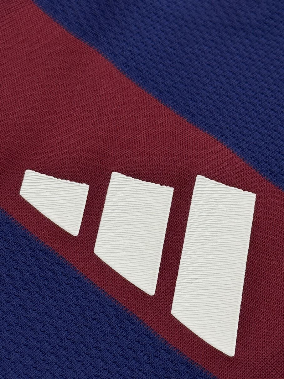1995/96シーズンのアウェイモデルをイメージしたネイビーとバーガンディのボーダーデザインを採用しています。