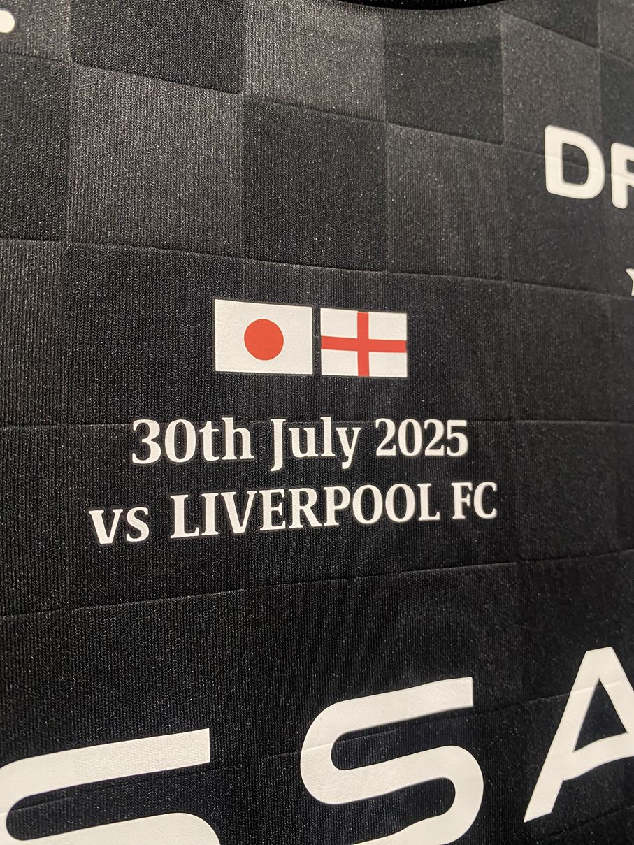 7月30日に「明治安田Jリーグワールドチャレンジ2025」と銘打って行われたリバプールとの試合で着用された、マッチデープリント入りの特別仕様のスペシャルユニフォーム。
