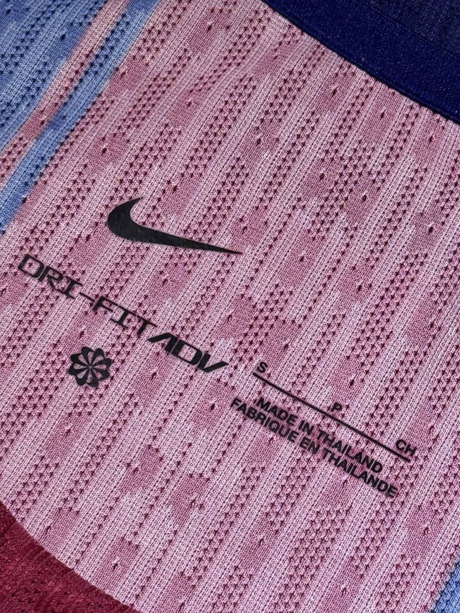 伝統的な「ブラウ・グラナ(₌青・エンジ)」ストライプにグラデーションを取り入れ、パープルの新たな色合いが。