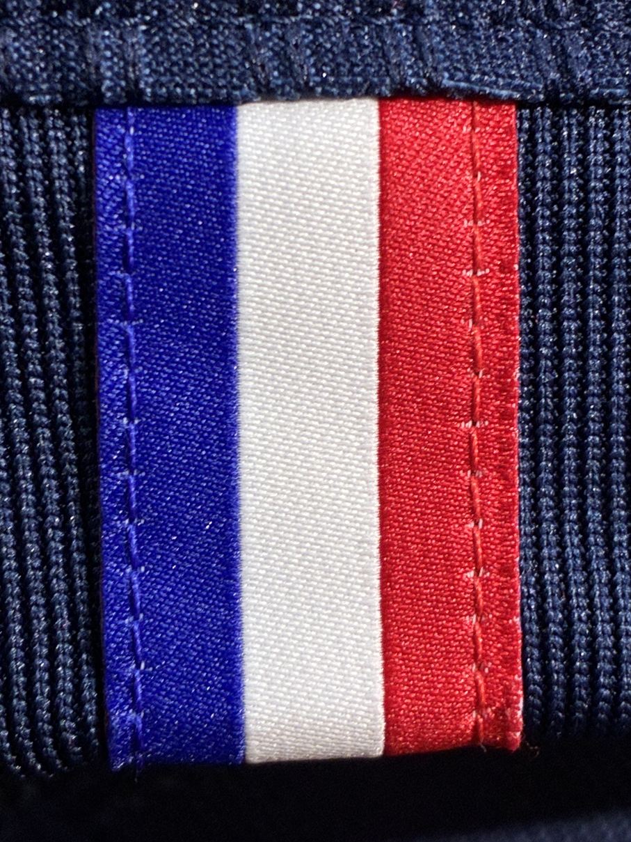 「パリのアイデンティティと伝統」を体現したデザインとして、身頃中央のラインが格子状のグラフィックで描かれています。